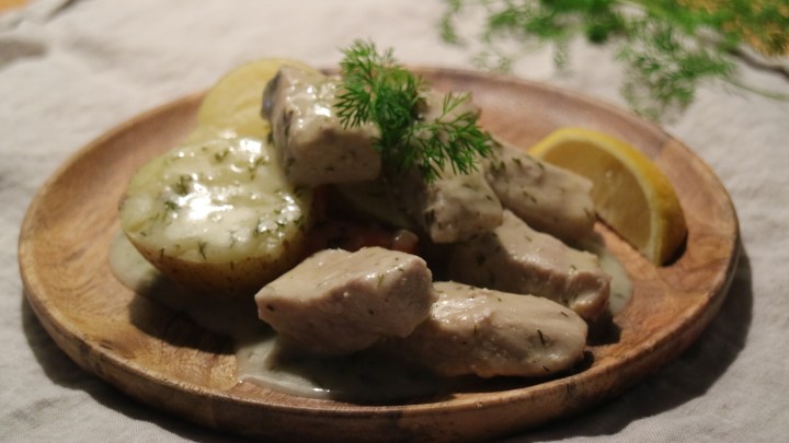 This is a very traditional Swedish dish and now when my parents are visiting me here in Florida, my mom and I prepared this for dinner. Dill and spirit vinegar are classic Swedish flavors and you find both in this dill pot or “Dillkött” – literally meaning dill meat. The meat you use can differ. Normally we use lamb or veal, but you can also use pork. It’s important to let the meat simmer for a couple of hours until the meat is almost melting apart.