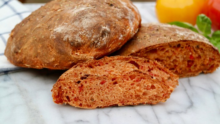 Tomato bread is a perfect match to a fresh green salad or your barbecue favourites. Tomato and oregano makes it remind me about pizza, but in bread form. Try it!