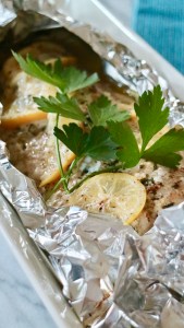 Grilled whole fish (mahi mahi) with garlic and lemon